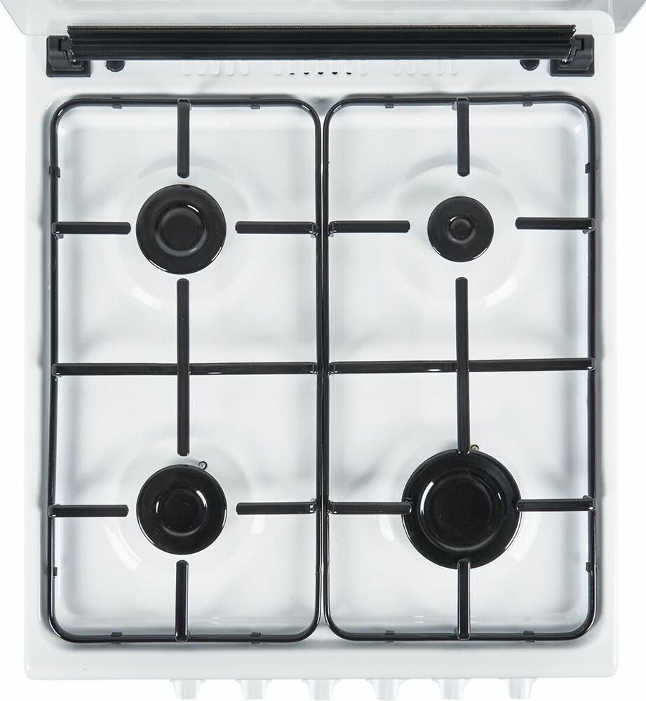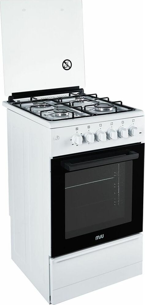 Ширина плиты 50 см. Газовые конфорки 4 шт; ГК, Стеклянная крышка рабочего стола; Электрозжиг на кнопке; Стальная решетка рабочего стола 2 шт. Духовка электро; Телескопические направляющие духовки; 2-слойное остекление дверцы духовки; Термостат духовки; Подсветка духовки; Эмалированный противень — 2 штуки; Ящик для посуды; Габариты плиты 50*85*60, вес 31 кг. 1 год гарантии. Производство Узбекистан.