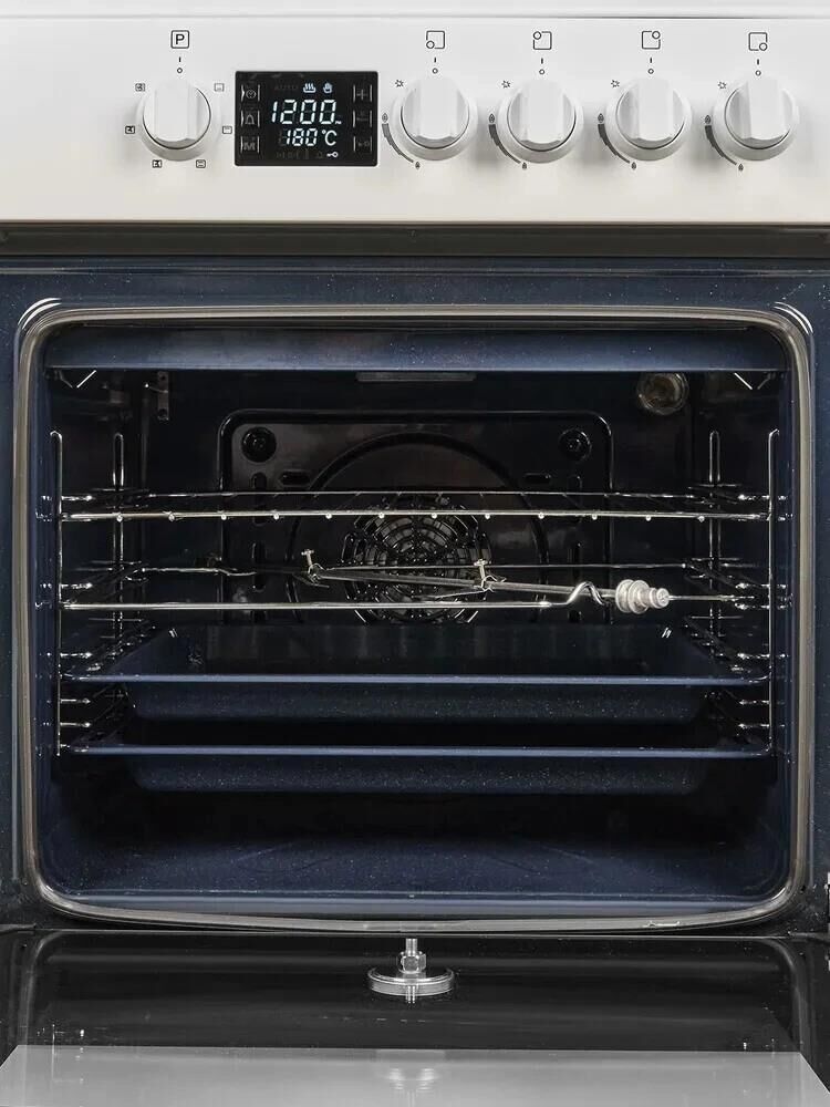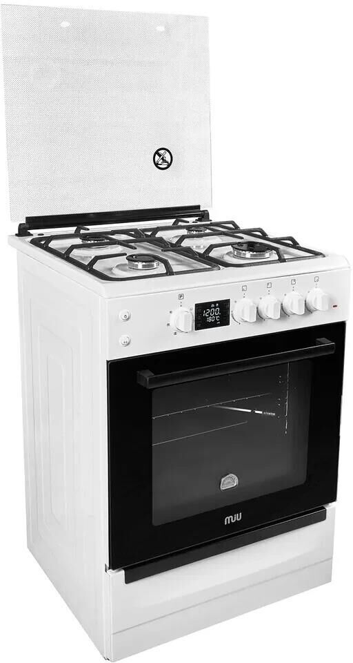 Габариты и вес: (ШхВхГ) 60х85х60. Вес 40 кг * Цвет белый * Материал конфорок сталь * Газ-контроль конфорок * Материал решеток чугун * Электроподжиг варочной поверхности * Тип духовки электрическая. Объем 65л * Конвекция в духовке * Гриль * Вертел * Термостат * Подсветка духовки * Звуковой сигнал. Отключение звукового сигнала * Дисплей * Часы * Таймер * Ящик для посуды * Регулируемые ножки * Настроенный вид газа природный (магистральный). Форсунки в комплекте на сжиженный *