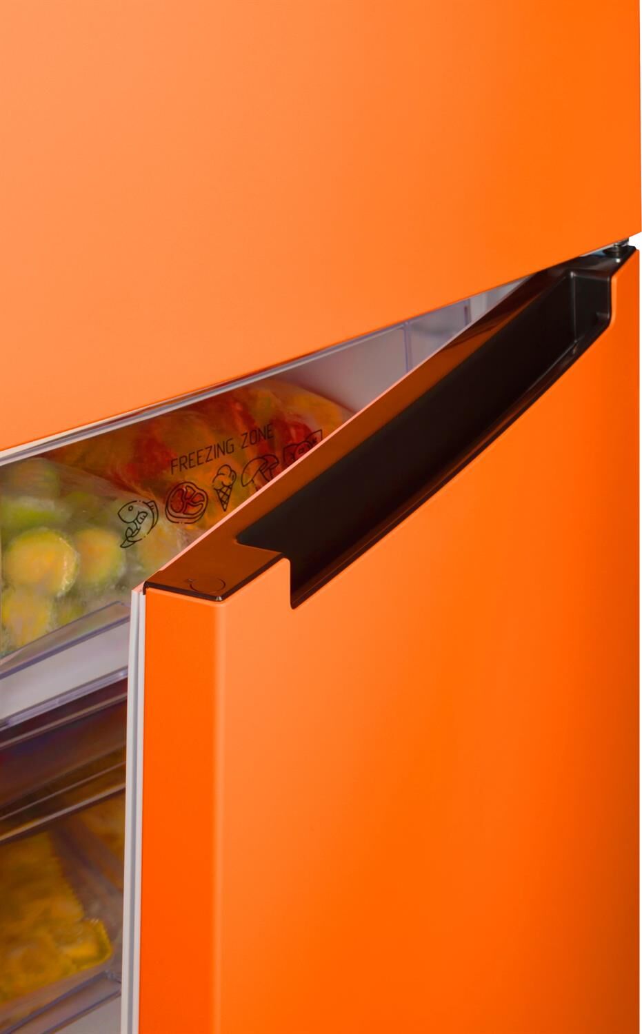 2-камерный, 320 л (ХК 205 л + МК 115 л), класс А+, LED-освещение, МК внизу, 4 полки стекло, выдвижной овощной ящик, 3 отделения в МК, 1 лоток для ягод, автоматическая система оттаивания, 188х57х62,5 см, цвет: оранжевый матовый
