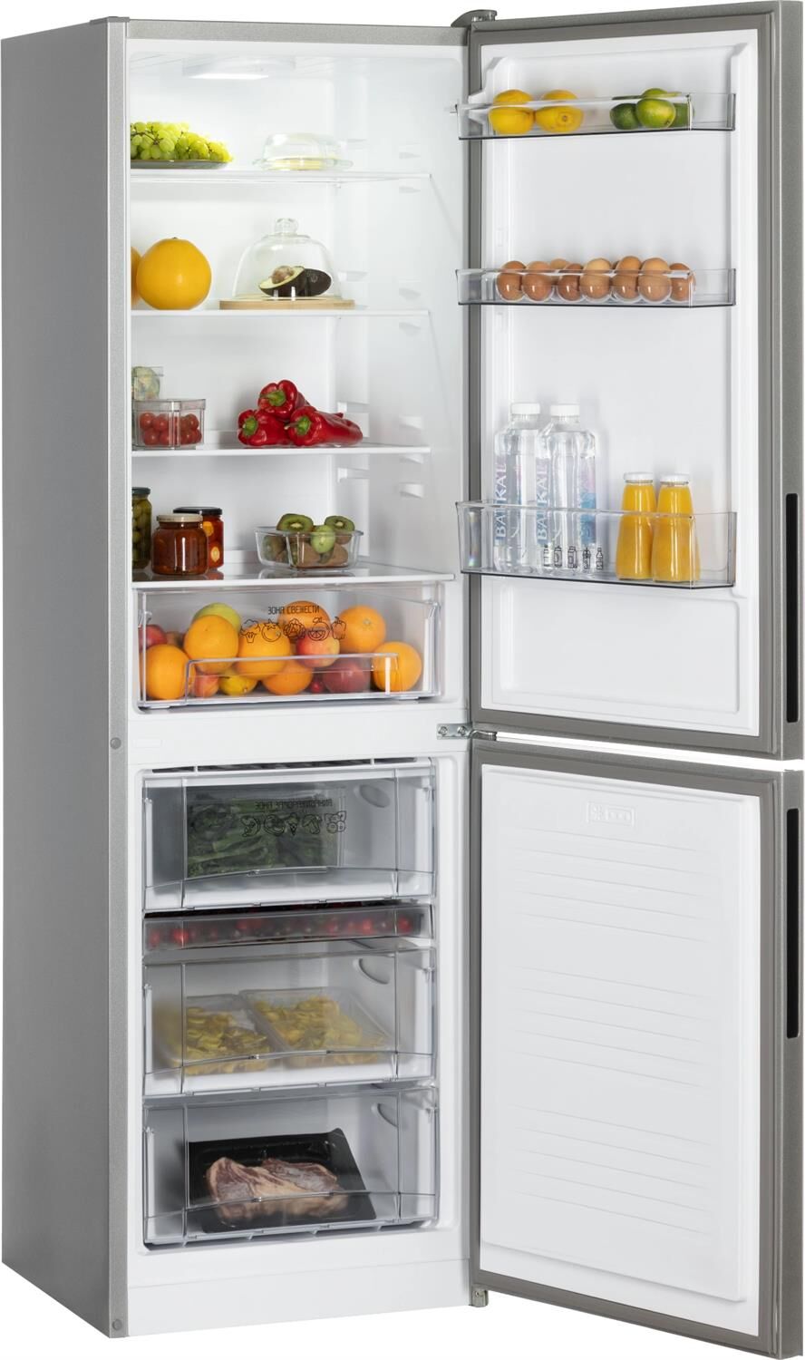 2-камерный, 320 л (ХК 205 л + МК 115 л), класс А+, LED-освещение, МК внизу, 4 полки стекло, выдвижной овощной ящик, 3 отделения в МК, 1 лоток для ягод, автоматическая система оттаивания, 188х57х62,5 см, фасад — стекло, цвет: глянцевый графит