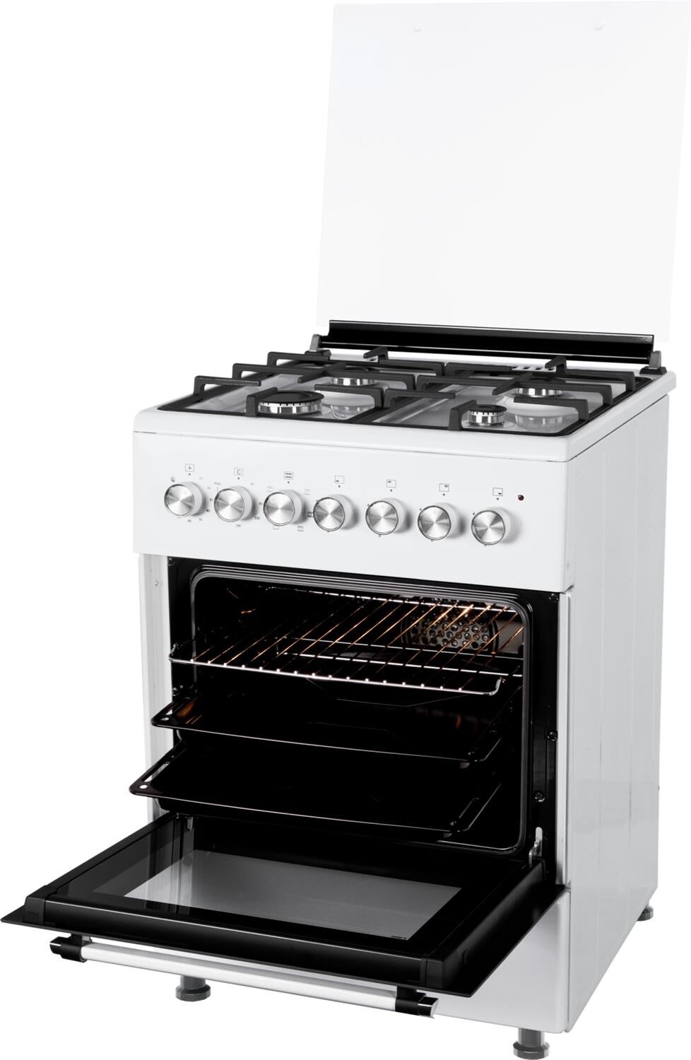 ШхГхВ 60х60х88,5; Электроподжиг конфорок ; Тип решетки Чугунная; Газ-контроль ; Объем духовки (л) 63; Конвекция ; Цвет Белый;