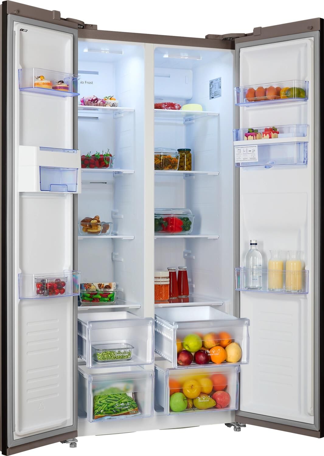 INVERTER compressor, NoFrost; Side-by-side ; ШхГхВ: 836х623х1780 мм; V=472/440 л (267л/173л); Диспенсер для воды на двери, Класс A++; 4 ящика; Фреон R600a; Клим. кл. SN, T; 37 дБ; Поворотный лёдогенератор на двери МК; LED освещение. Электронный дисплей.