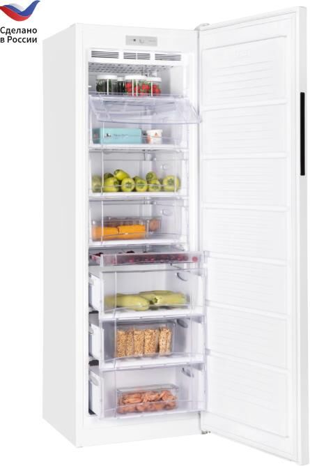 256 л, класс А+, 7 секций МК, 1 лоток для ягод, 6 выдвижных ящиков из пластика, 173х57х63 см, вертикальная ручка, съемный уплотнитель двери, цвет: белый