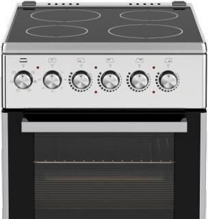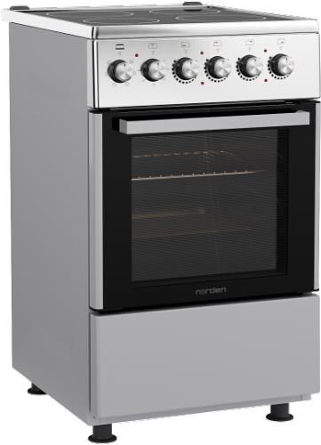 Плита отдельностоящая стеклокерамика 50х60 см электрическая духовка, 5 режимов приготовления духового шкафа, съемное внутреннее стекло (Cood Door), турбоконвекция, термостат, подсветка духовки, верхний,нижний тэн, 1 противень, 1 решетка, Рабочая поверхность стеклокерамика (2 x ø145 мм — 1200 Вт + 2 x Ø185 мм — 1800 Вт), нижний ящик для посуды, объём духовки 52 л. без крышки. В комплекте: кабель, регулируемые ножки. Цвет Нержавеющая сталь. Упаковка пенопласт