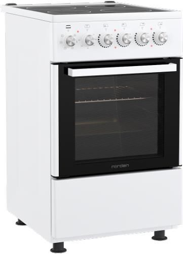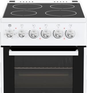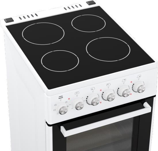 Плита отдельностоящая стеклокерамика 50х60 см электрическая духовка, 5 режимов приготовления духового шкафа, съемное внутреннее стекло (Cood Door), турбоконвекция, термостат, подсветка духовки, верхний,нижний тэн, 1 противень, 1 решетка, Рабочая поверхность стеклокерамика (2 x ø145 мм — 1200 Вт + 2 x Ø185 мм — 1800 Вт), нижний ящик для посуды, объём духовки 52 л. без крышки. В комплекте: кабель, регулируемые ножки. Цвет Белый. Упаковка пенопласт