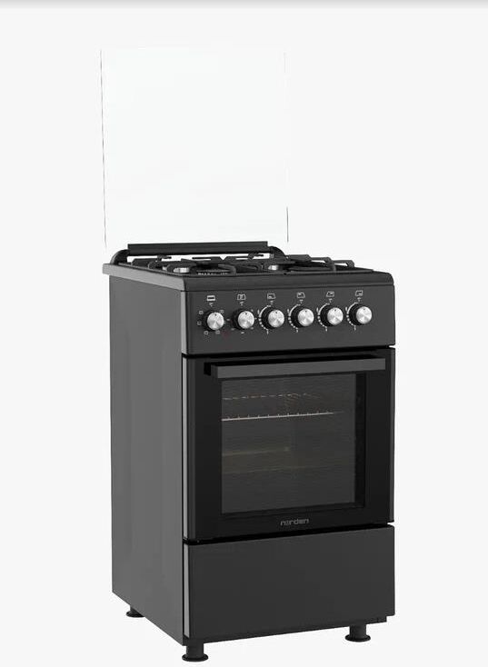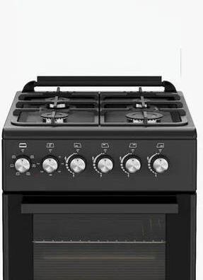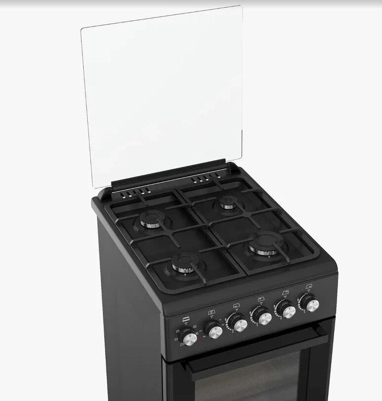 Плита отдельностоящая газовая с электрической духовкой 50х60 см, съемное внутреннее стекло (Cood Door), 4 конфорки с газ контролем , чугунная решетка, подсветка духовки, верхний нижний тэн, турбоконвекция Стеклянная верхняя крышка, электроподжиг, 1 противень, 1 решетка, нижний ящик для посуды, объём духовки 52 л. В комплекте: кабель, вилка, жиклеры, штуцер, регулируемые ножки. Цвет Черный матовый. Упаковка картон
