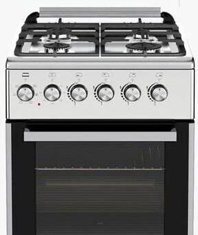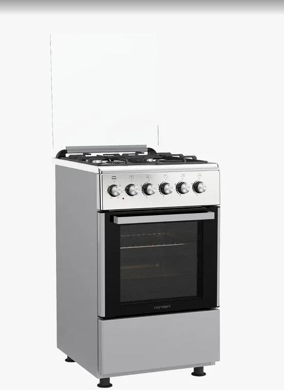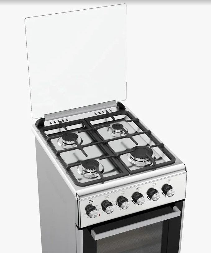Плита отдельностоящая газовая с электрической духовкой 50х60 см, съемное внутреннее стекло (Cood Door), 4 конфорки с газ контролем , чугунная решетка, подсветка духовки, верхний нижний тэн, турбоконвекция Стеклянная верхняя крышка, электроподжиг, 1 противень, 1 решетка, нижний ящик для посуды, объём духовки 52 л. В комплекте: кабель, вилка, жиклеры, штуцер, регулируемые ножки. Цвет Нержавеющая сталь. Упаковка картон