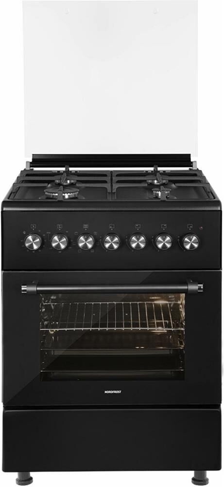 NORDFROST Газовая плита GE6064B, электрическая духовка, стеклянная крышка, чугун, черный