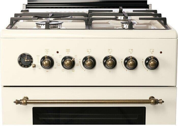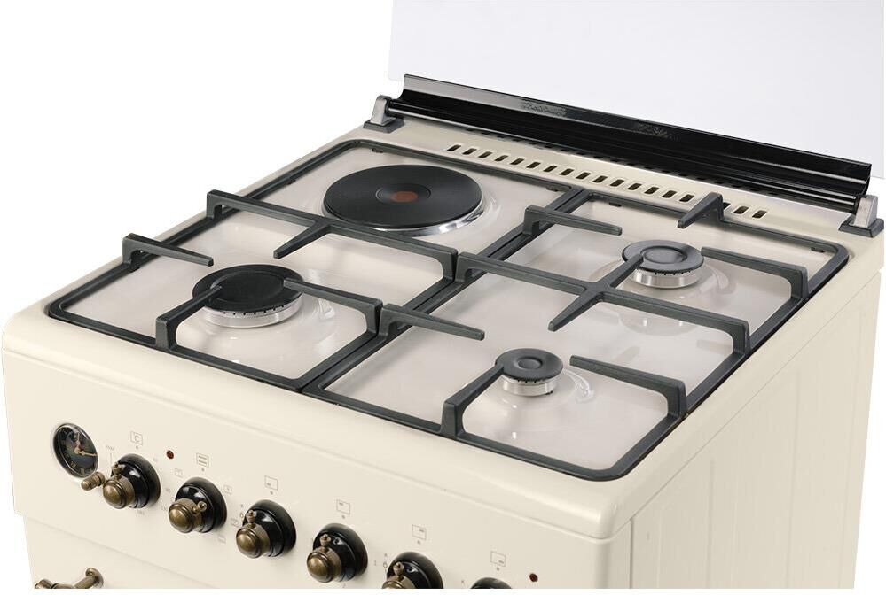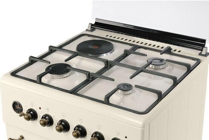 Тип варочной панели: газовая, электрическая; Материал рабочей поверхности: эмалированный металл; Общее количество конфорок: 4; Тип духовки: электрическая; Объем духовки: 63 л; Очистка духовки: традиционная; Гриль: есть; Конвекция: есть