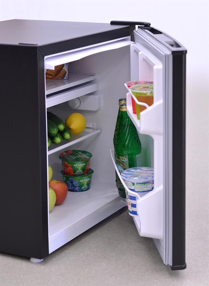 (ВхШхГ)52,5х50х48см.Цвет черный матовый.Общий объем, 60л.Объем холодильной камеры (ХК), 49л.Объем ОСП, 11л.Класс энергопотребления A+.Температура в ХК 0°С…+8°С.Количество полок ХК 1.Тип полок в ХК закаленное стекло.Температура в ОСП -3°С…0°С.Система оттаивания холодильника ручная.Хладагент R600a (изобутан).Суточный расход электроэнергии, кВт.час 0,301.Уровень шума, дБ 39.Перенавешиваемые двери.Ручки интегрированные горизонтальные.Испаритель запененный.Конденсатор интегрирован в боковые панели.
