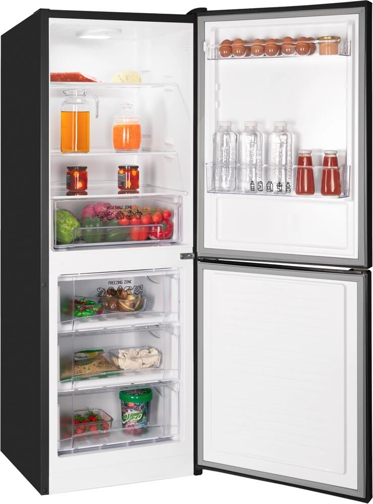 2-камерный, 270 л (ХК 170 л + МК 100 л), класс А+, LED-освещение, МК внизу, 3 полки стекло, выдвижной овощной ящик, 3 отделения в МК, автоматическая система оттаивания, 167х57х62,5 см, цвет: черный матовый