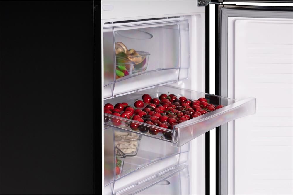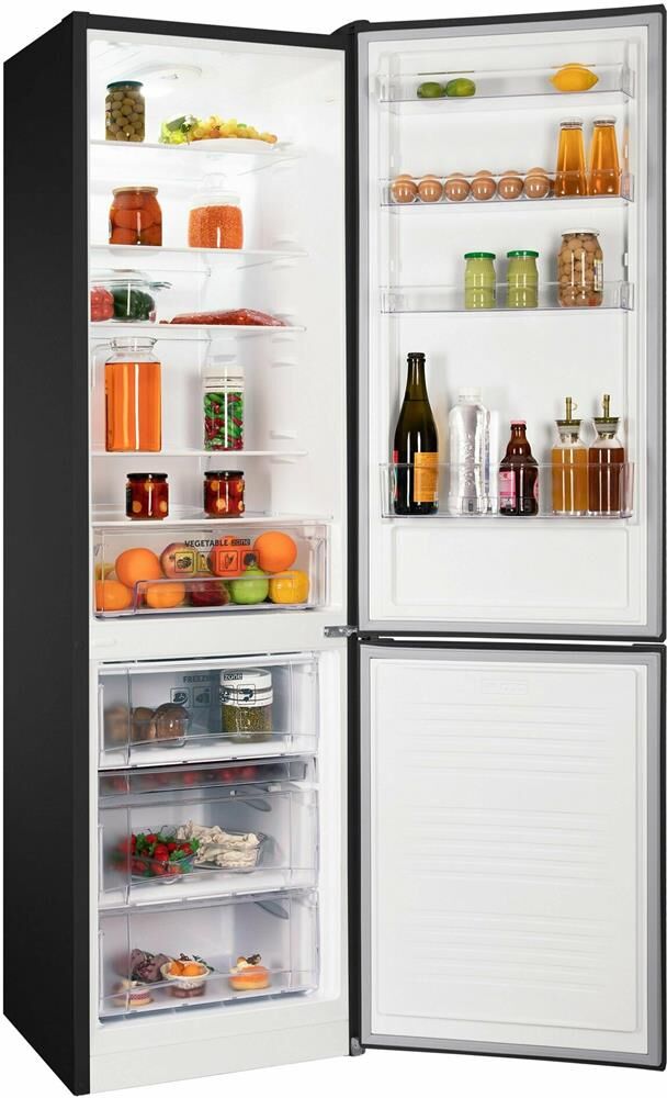 2-камерный, Общий объем 326 л, объем холодильной камеры 238 л, объем морозильной камеры 88 л, класс А+, LED-освещение, МК внизу, 4 полки стекло, 2 овощных ящика, 3 отделения в МК, сосуд для ягод 1, 203,4х61х62,5 см, цвет: черный матовый