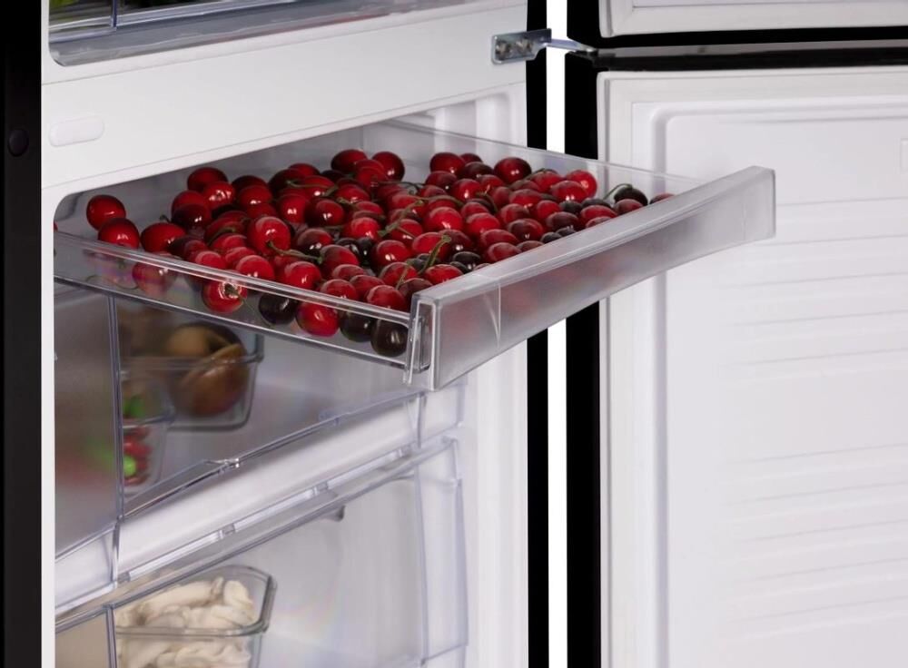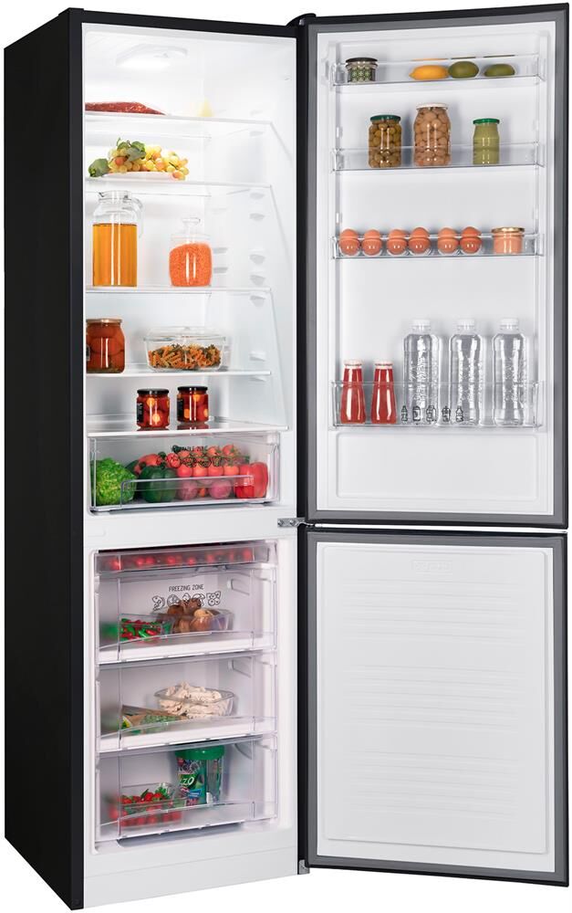 (ВхШхГ)203.4 х 57.4 х 62.5см.Цвет черный.Общий объем, л343.Объем холодильной камеры (ХК), л238 Объем морозильной камеры (МК), л105.Класс энергоэффективности A+.Температура в ХК 0°С…+8°С Количество полок ХК 5.Температура в МК не выше -18°С.Количество выдвижных ящиков в МК 3.Лоток для ягод в МК 1.Система оттаивания МК NO FROST.Производительность замораживания, кг/сут 3,5 Хладагент R600a (изобутан).Суточный расход электроэнергии, кВт.час 0,857.Уровень шума, дБ 41.Перенавешиваемые двери.Ручки интегрированные горизонтальные.Испаритель запененный.