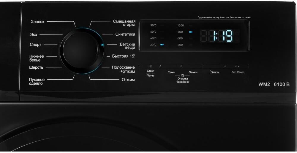 Цвет: Черный Класс энергопотребления: A++ Защита от детей: Да Ширина (см): 59.5 Глубина (см): 44 Высота (см): 85 Вес (кг): 52 Управление: Электронно-механическое Тип загрузки: Фронтальная Максимальная загрузка белья (кг): 6 Мотор: Стандартный Максимальная скорость отжима (об/мин): 1000 Тип дисплея: LED Сушка: Нет Материал бака: Полимерный Цвет люка: Черный Уровень шума при стирке (Дб): 60 Уровень шума при отжиме (Дб)