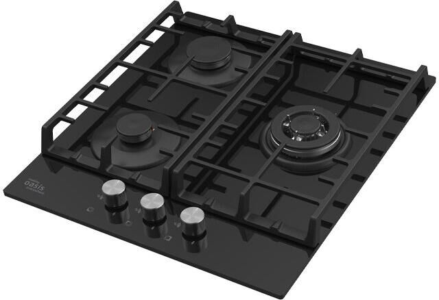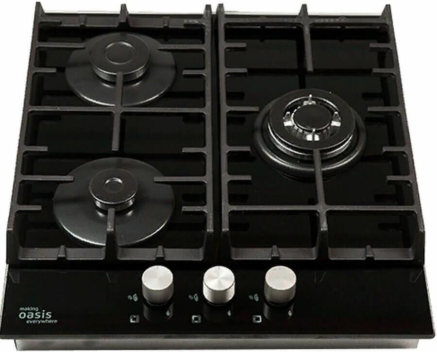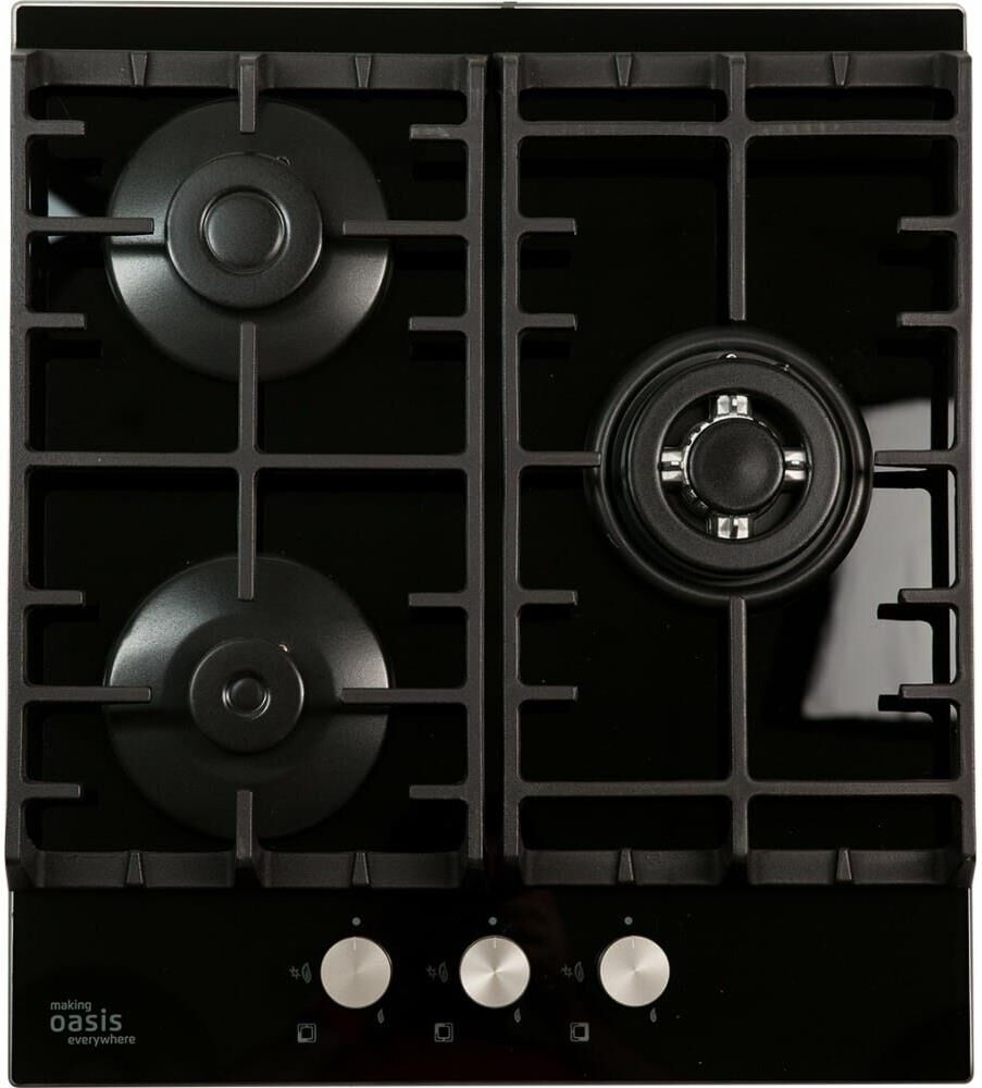 OASIS Газовая варочная панель P-3GBT, 3 конфорки, закаленное стекло, черный