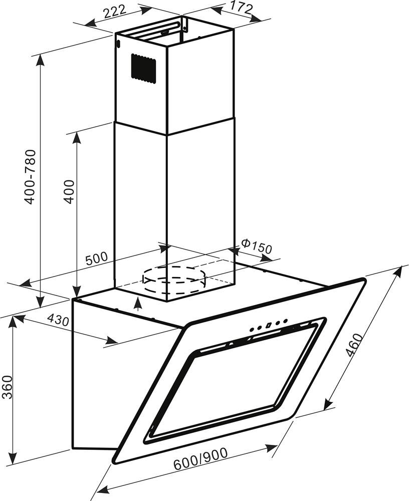 Цвет белый Ширина, мм 600 Производительность, м?/ч 1000 Освещение LED лампа Номинальная мощность, Вт 222 Переключатель сенсорный Фильтр алюминиевый Декоративная труба Да Вес нетто, кг