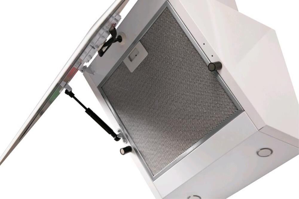 Белый, Ширина 600мм, Воздушный поток 1000 м/ч, 2 LED лампы, Мощность освещения 2×3 Вт, 1 aлюминиевый фильтр, необходимое количество угольных фильтров — 2 шт, Модель угольного фильтра VU-01, Уровень шума 44 дБ, сенсорное управление, Вес нетто 9,1 кг, Турция