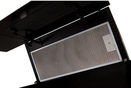 Черный, Ширина 900мм, Воздушный поток 1000 м/ч, 2 LED лампы, Мощность освещения 2×3 Вт, 2 aлюминиевых фильтра, необходимое количество угольных фильтров — 2 шт, Модель угольного фильтра VU-01, Уровень шума 44 дБ, сенсорное управление, Вес нетто 12 кг, Турция