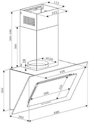 Белый, Ширина 600мм, Воздушный поток 750 м/ч, 2 LED лампы, Мощность освещения 2×3 Вт, 1 aлюминиевый фильтр, необходимое количество угольных фильтров — 2 шт, Модель угольного фильтра VU-02, Уровень шума 44 дБ, кнопочное управление, Вес нетто 9,4 кг, Турция