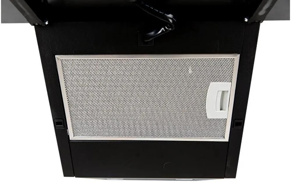 Черный, Ширина 600мм, Воздушный поток 500 м/ч, 1 LED лампа, Мощность освещения 1×2 Вт, 1 aлюминиевый фильтр, необходимое количество угольных фильтров — 2 шт, Модель угольного фильтра FE-01, Уровень шума 44 дБ, кнопочное управление, Вес нетто 7 кг, Турция