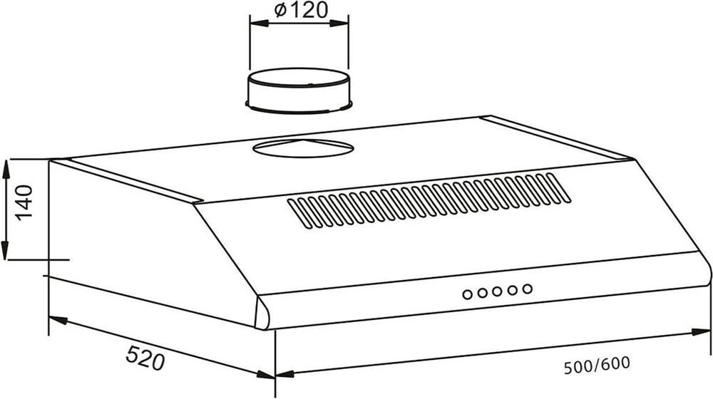 Черный, Ширина 600мм, Воздушный поток 400 м /ч, Мощность освещения 1×5 Вт, 2 aлюминиевых фильтра, необходимое количество угольных фильтров — 1 шт, Модель угольного фильтра PF-01, Уровень шума 44 дБ, кнопочное управление, Вес нетто 5,30 кг, Турция