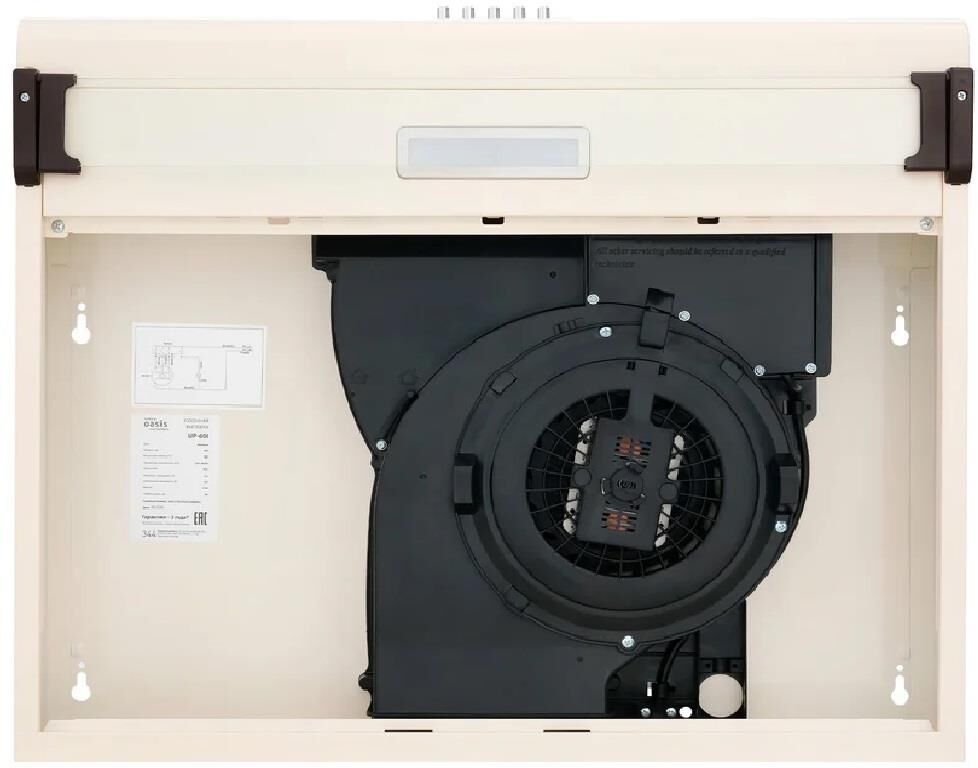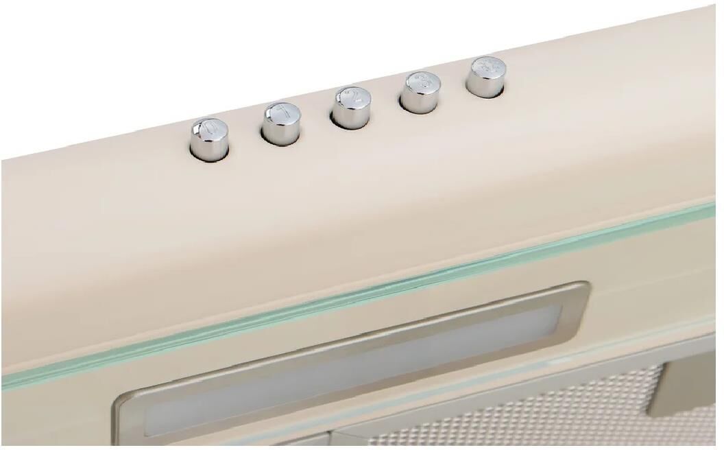 Бежевый, Ширина 600мм, Воздушный поток 400 м/ч, Мощность освещения 1×5 Вт, 2 aлюминиевых фильтра, необходимое количество угольных фильтров — 1 шт, Модель угольного фильтра PF-01, Уровень шума 44 дБ, кнопочное управление, Вес нетто 5,30 кг, Турция