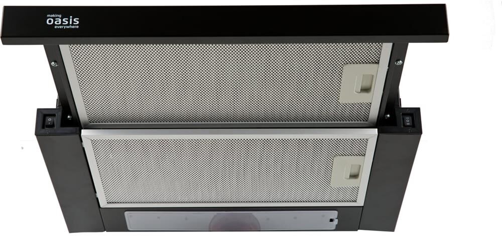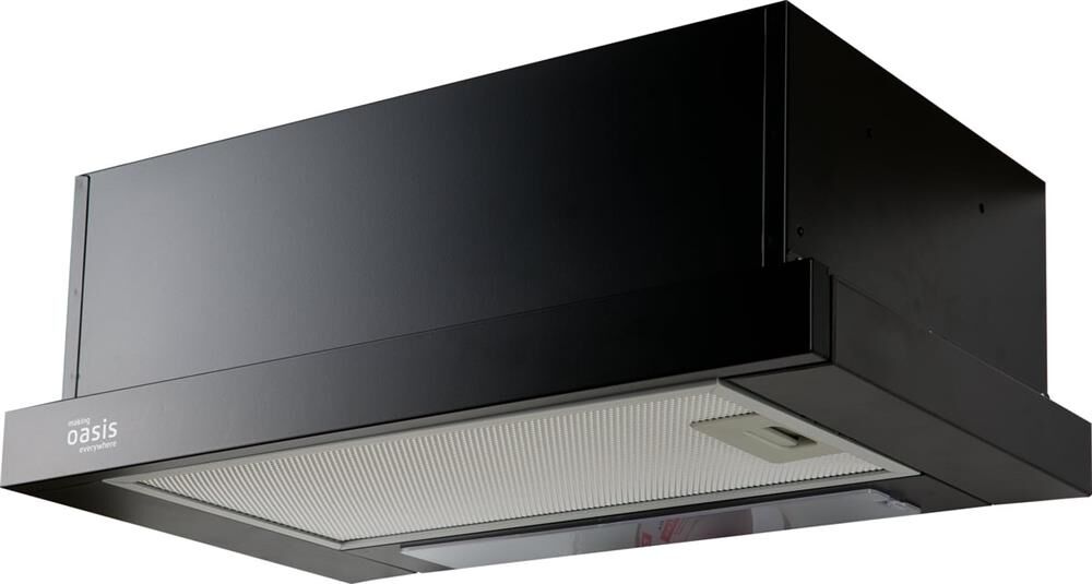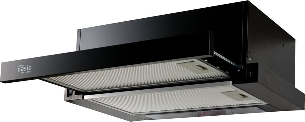 Вид установки встраиваемая Черный, Ширина 500мм, Воздушный поток 500 м/ч, 2 стандартные лампы, Мощность освещения 2×25 Вт, 2 aлюминиевыйх фильтра, необходимое количество угольных фильтров — 2 шт, Модель угольного фильтра FU-24, Уровень шума 34-50 дБ, управление — тумблер, Вес нетто 6,5 кг, Китай