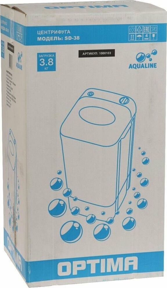 Центрифуга OPTIMA SD-38 (загрузка белья 3.8кг, 1350 об./мин.).Барабан пластик. Мощность (Вт): 160; Размер изделия (мм): 330*360*740 мм;