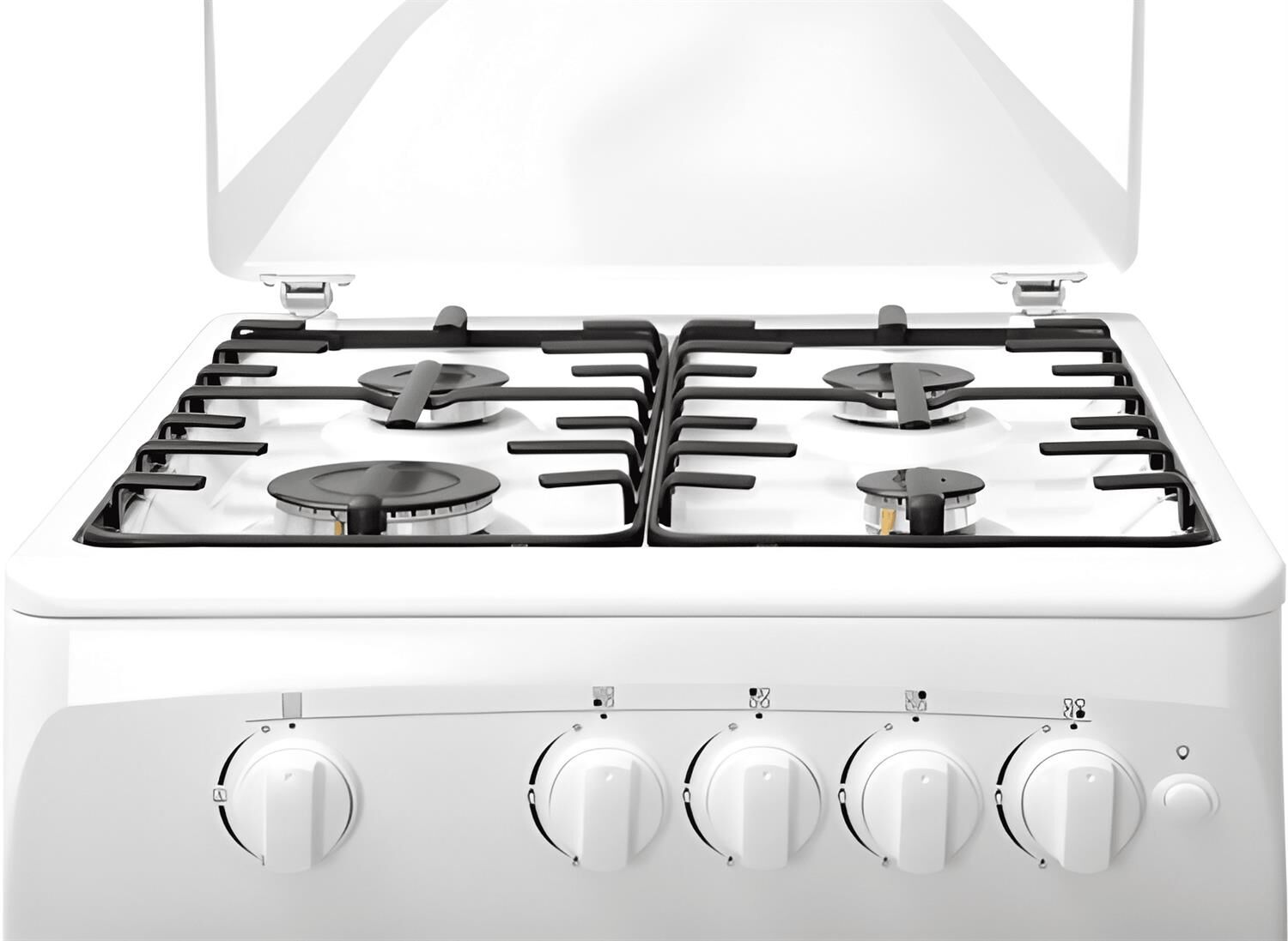 50 х 60 х 85 Цвет-белый. Газовая духовка. Объем духовки — 54 л. Материал рабочей поверхности- эмалированная сталь. Количество газовых конфорок 4. Газконтроль конфорок и духовки. Материал решетки — Лама. Управление механическое. Электроподжиг в поворотной ручке. Ящик для хранения посуды-отсутствует. Металлическая крышка. Количество стекол дверцы духовки 2. Освещение духовки — лампа накаливания. Плита комплектуются одним противнем, одной решеткой духовки. Вес (нетто/брутто) 27.8/30.4 кг