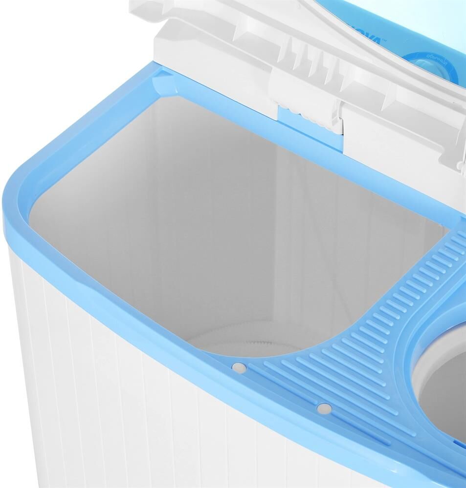 (ШхГхВ) 74,5х43,5х83см.Цвет белый.Загрузка сухого белья в бак стирки, до (кг): 7 Загрузка белья в бак отжима, до (кг): 5,5.Максимальная потребляемая мощность (Вт): 500.Сливной насос.Реверс.Вес, кг: 18,5.Количество программ стирки 2. Таймер стирки (мин)15.Таймер отжима (мин) 5.Активатор нового поколения. Сливной насос.Реверс, снижающий эффект закручивания белья .Двигатель повышенной мощности.Материал корпуса полипропилен.Фильтр для сбора ворса и пуха.Класс безопасностиIP54.Безопасная система отжима.Скорость отжима (об/мин) 1350
