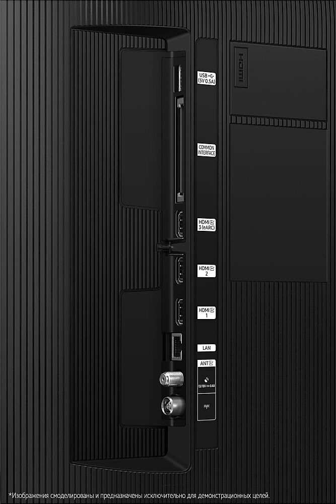 Диагональ 65" (165 см) Разрешение 3840 x 2160 Соотношение сторон 16:9 Тип панели Crystal UHD Углы обзора 178 по горизонтали, 178 по вертикали Частота обновления 60 Гц Безрамочный дизайн да Тюнер телевизора Цифровой тюнер DVB-T2 есть Кабельный тюнер DVB-C есть Спутниковый тюнер DVB-S2 есть. Мощность акустики 2 x 10 Вт Акустическая схема 2.0 Технологии звука Dolby Digital Plus, OTS Lite, Q-Symphony, Adaptive sound. Процессор изображения Crystal 4K Стандарт разрешения экрана 4K Ultra HD Поддержка HDR есть Технология HDR HDR10+/HLG. Встроенный Wi-Fi есть Встроенный Bluetooth есть Телетекст есть Операционная система Tizen OS Поддержка SMART TV есть Игровой режим есть Управление со смартфона есть. Антенный вход IEC75 Разъем RJ-45 (Ethernet) 1 Разъем CI+/PCMCIA 1 Разъем S/PDIF оптический 1 Разъемы HDMI общее количество HDMI 3 РазъемUSB 1. Тип блока питания встроенный Энергопотребление в рабочем режиме 150 Вт. Размер VESA 400×300.