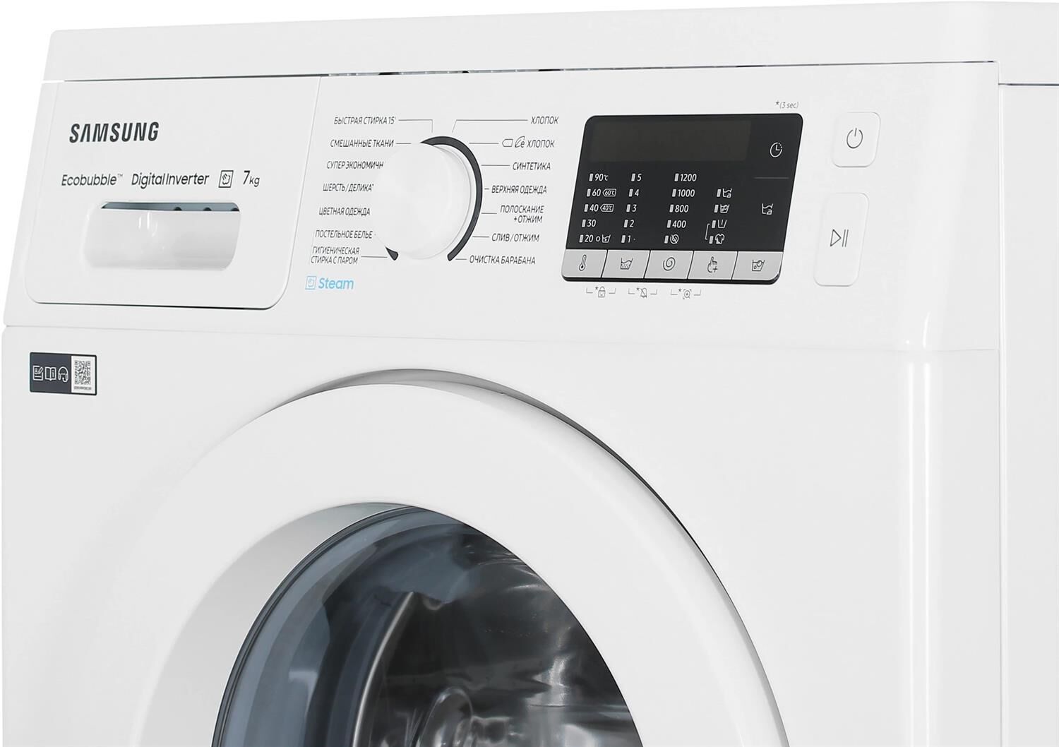 Размеры (ШхВхГ): 60 х 85 х 45 см; Цвет: белый; Стирка: 7 кг, 1200 об/мин; Обработка паром; Дисплей; Звуковой сигнал окончания стирки; Класс (стирка/отжим/энергопотребление): A/ B/ A; Шум (стирка/отжим): 57 дБ/ 75 дБ; Защита от детей; Защита от скачков напряжения;