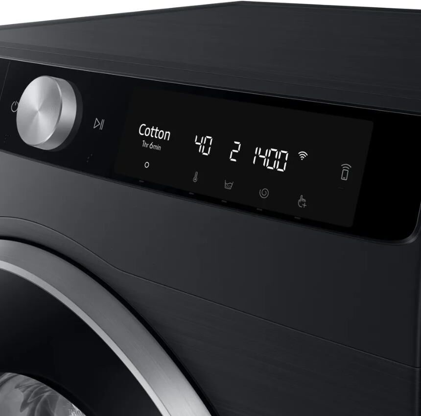 Тип: стиральная машина с обработкой паром; Тип мотора: инверторный; Габариты ШхВхГ, см: 60х85х59.5; Основной цвет: черный; Тип загрузки: фронтальная; Максимальная загрузка: 9 кг; Максимальная скорость отжима: 1400 об/мин; Тип управления: электронное; Уровень шума при стирке: 53 дБ; Уровень шума при отжиме: 74 дБ; Расход воды: 54 л; Количество программ: 14; Класс стирки: A; Класс отжима: B; Класс энергопотребления: A