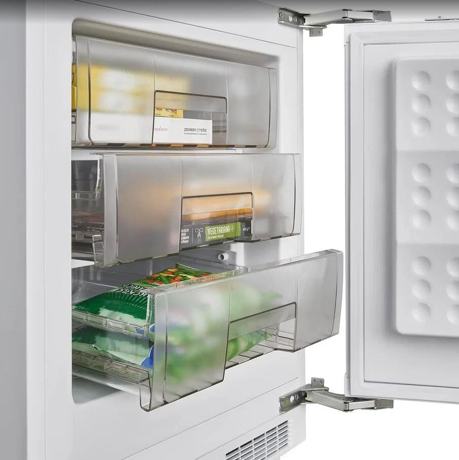 Габариты: ВхШхГ, см: 81,8х59,5х54,5; Общий объём, л: 104; Полезный объём, л: 90; Тип управления: Механический; Количество секций, шт: 3; Время сохранения холода при отключении электроэнергии, ч: 10; Годовое электропотребление, кВт/ч: 178; Тип крепления фасада: Жёсткое; Климатический класс: SN/N/ST( от+10°С до +38°С); Система Zero Clearance; Перенавешиваемые двери; Цвет: белый