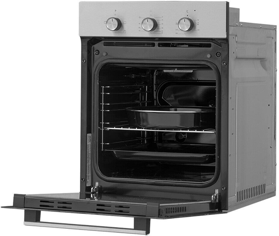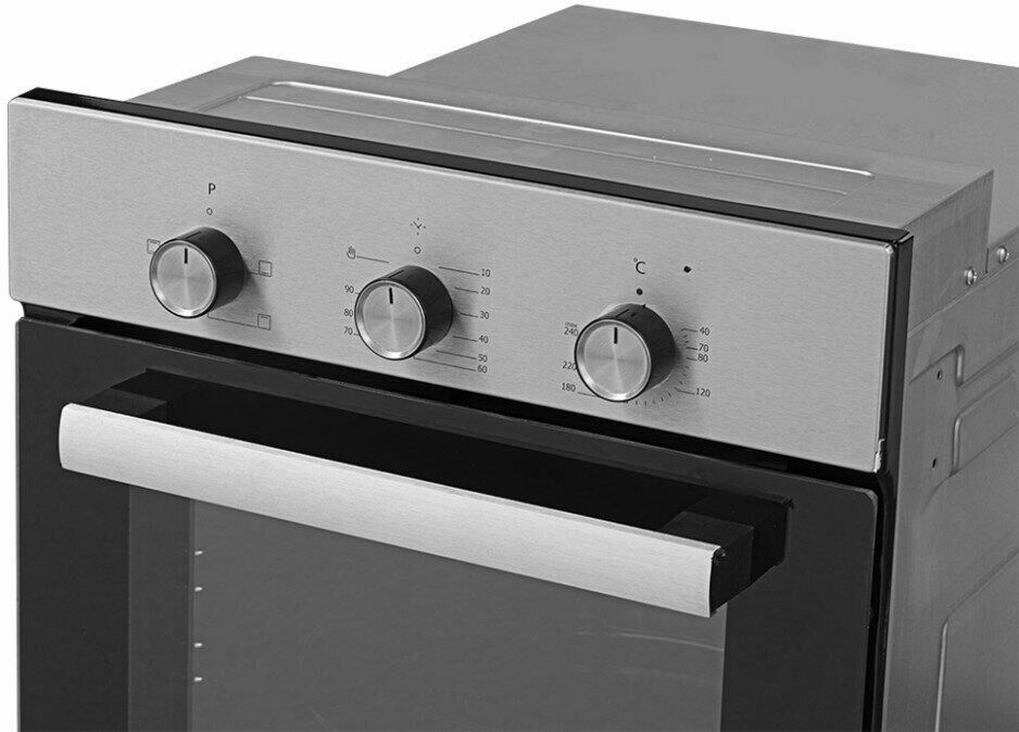 Тип: электрический духовой шкаф; Габариты ВхШхГ, см: 59,6х45х56,6; Размер ниши для встраивания (ВхШхГ), см: 60х41,5х55; Установка: независимый; Вид управления: поворотный механизм; Тип таймера: с автоотключением; Объем духовки: 49 л; Материал панели управления: нержавеющая сталь; Минимальная температура: 40 °C; Максимальная температура: 240 °C; Вентилятор охлаждения; Очистка духовки: эмаль легкой очистки; Количество стекол дверцы духовки: 2 шт; Открытие дверцы духовки: откидная; Количество режимов работы / автопрограмм: 3; Режимы работы духовки: верхний нагрев, нижний + верхний нагрев, нижний нагрев; Количество уровней установки противней: 4; Класс энергоэффективности: A; Потребляемая мощность в работе: 1900 Вт; Потребляемая мощность в спящем режиме: 2 Вт; Напряжение питания: 220-240 В / 50-60 Гц; Наличие кабеля питания / вилки: кабель с вилкой