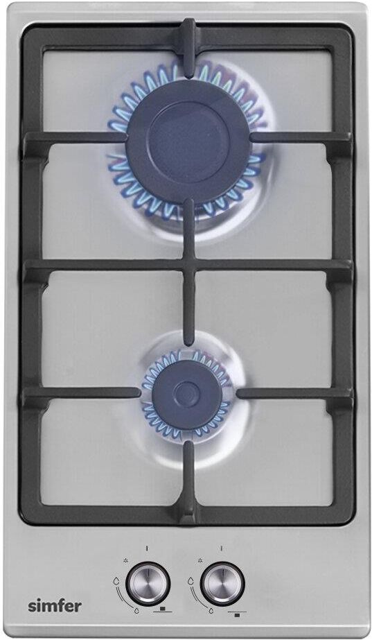 • Независимая газовая варочная поверхность 30 см. • Кол-во конфорок – 2, 1 х конфорка повышенной мощности 3000 Вт., 1 x экономичная конфорка 1000 Вт. • Автоматический розжиг • Газ контроль • Фронтальная панель управления • Комплектация: цельная чугунная р