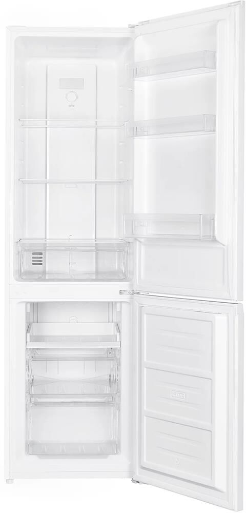.Габариты (В*Ш*Г)см 180*55*65. No Frost, полезный объем 237 (182+55) литров, А+ класс, 42 дБ, R600а, N-ST, LED подсветка, потребление энергии 256 кВт/год, мощность замораживания 2,5 кг/сутки. Холодильное отделение: 3 полки из стекла, 3 боковых полки, 1 большой ящик для овощей и фруктов. Морозильное отделение: 2 выдвижных ящика, 1 лоток с легким доступом. Вес нетто и брутто 51 и 55 кг, цвет белый. Регулируемые ножки, перенавешиваемые двери, интегрированные ручки.