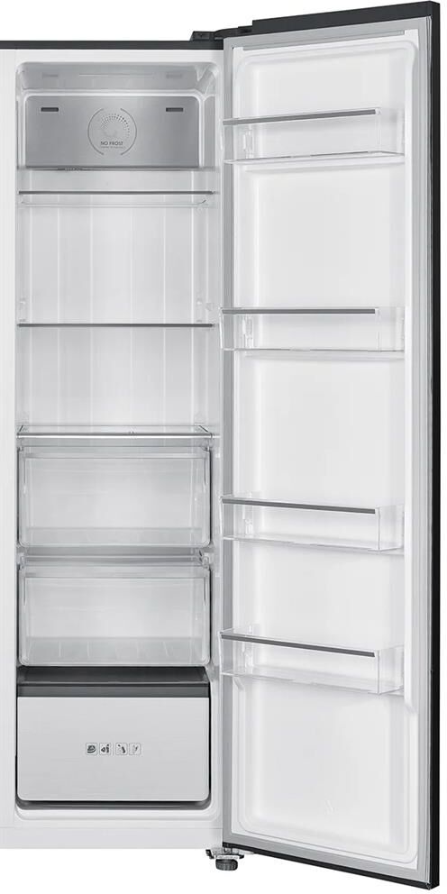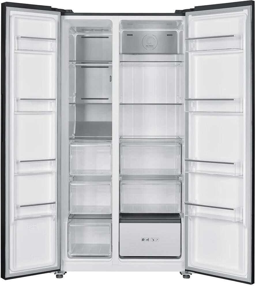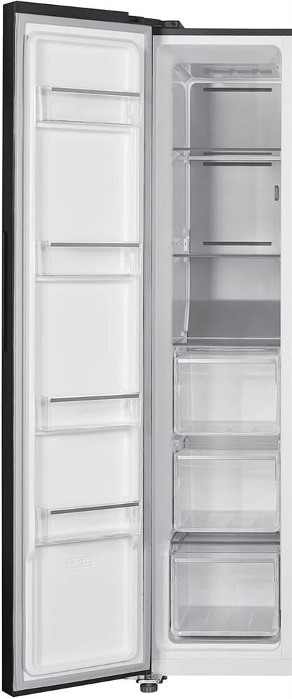 Двухдверный холодильник серии SIDE BY SIDE, морозильная камера сбоку. Total No Frost, полезный объем 595 (370/225) литров, А++ класс, инверторный компрессор, 39 дБ, R600а, SN-T, сенсорный дисплей, светодиодная подсветка SKY, потребление энергии 443 кВт/год, мощность замораживания 15 кг/сутки, охлаждающая пластина Metal Cooling, стерилизующий модуль LTC, звуковая сигнализация открытой двери, интегрированные ручки. Холодильное отделение: 3 полки из стекла, 4 боковых полки, 1 ящик для овощей и фруктов, 1 ящик с контролем влажности, адаптивная зона с электронным управлением (от -3°С до +5°С). Морозильное отделение: 3 полки из стекла, 4 боковых полки, 3 выдвижных ящика. Режимы: отпуск, супер-заморозка, супер-охлаждение, эко, цвет нержавеющая сталь, ВхШхГ: 1770 910 730 мм. Регулируемые ножки и петли дверей.