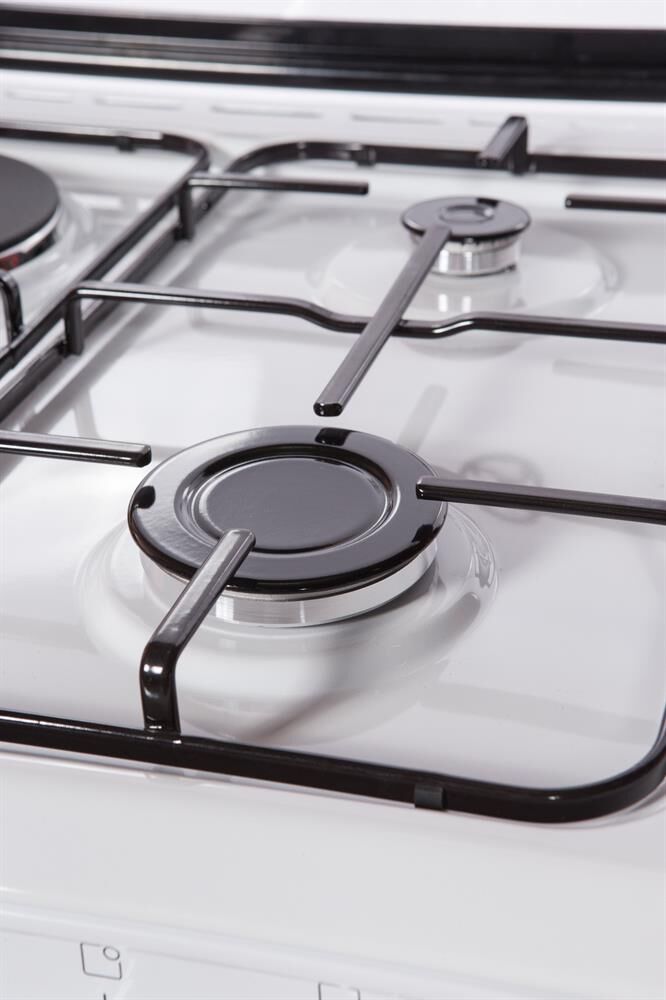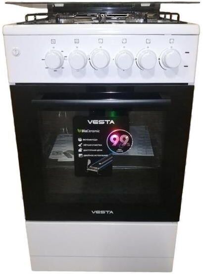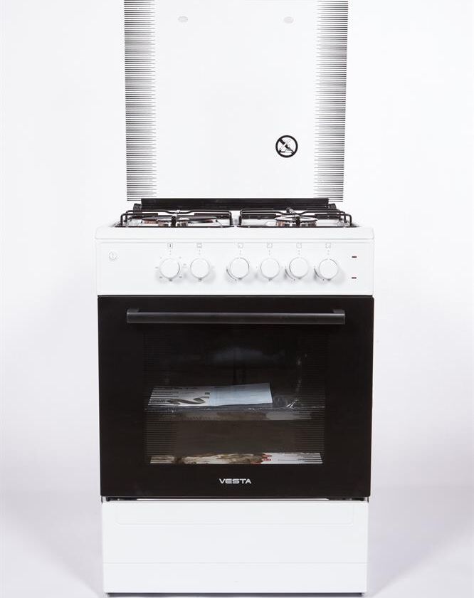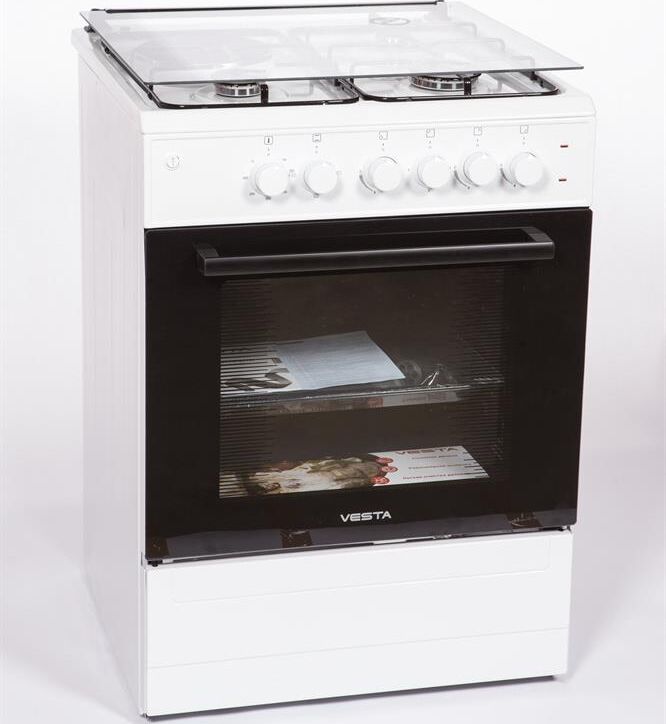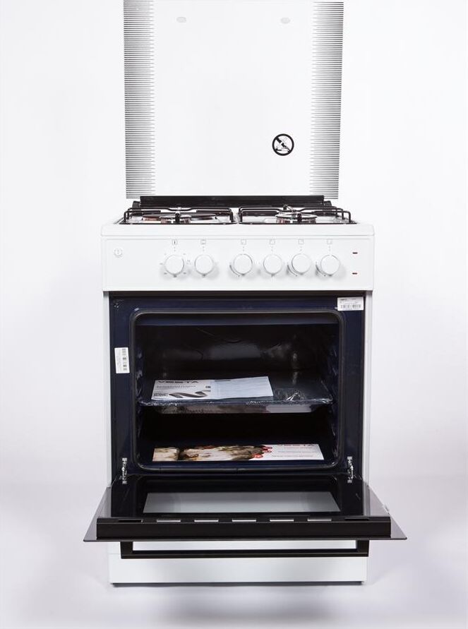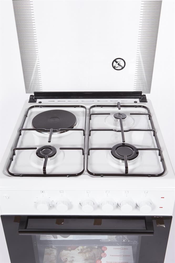 ШхВхГ: 50х85х60 см; Цвет: белый; Тип духовки: электрическая; Тип варочной панели: комбинированная; 3 горелки -газовые, 1горелка — электрическая; Дополнительные функции: термостат; Особенности конструкции: подсветка духовки; Электроподжиг