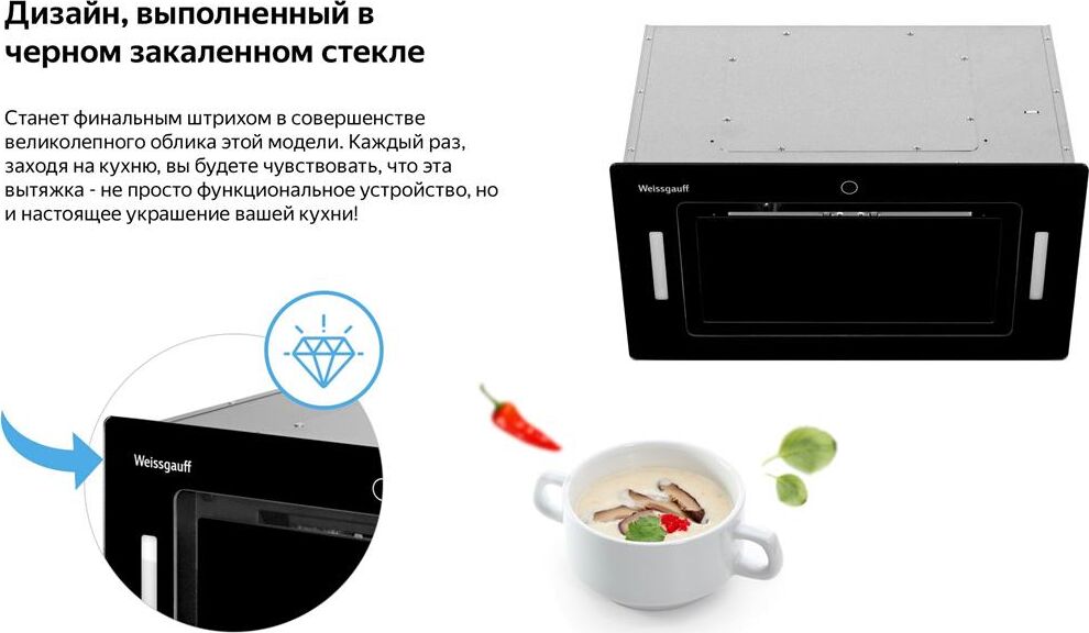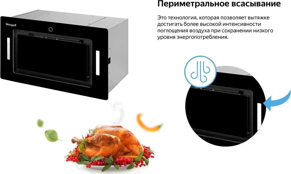 WEISSGAUFF Вытяжка встраиваемая Aura 1200 Remote черный управление: сенсорное (1 мотор)