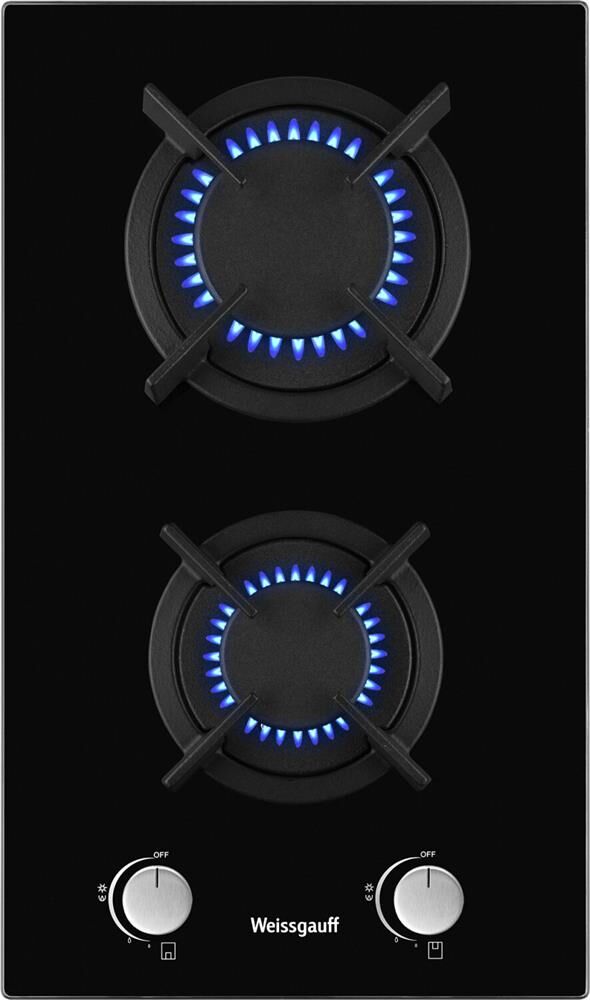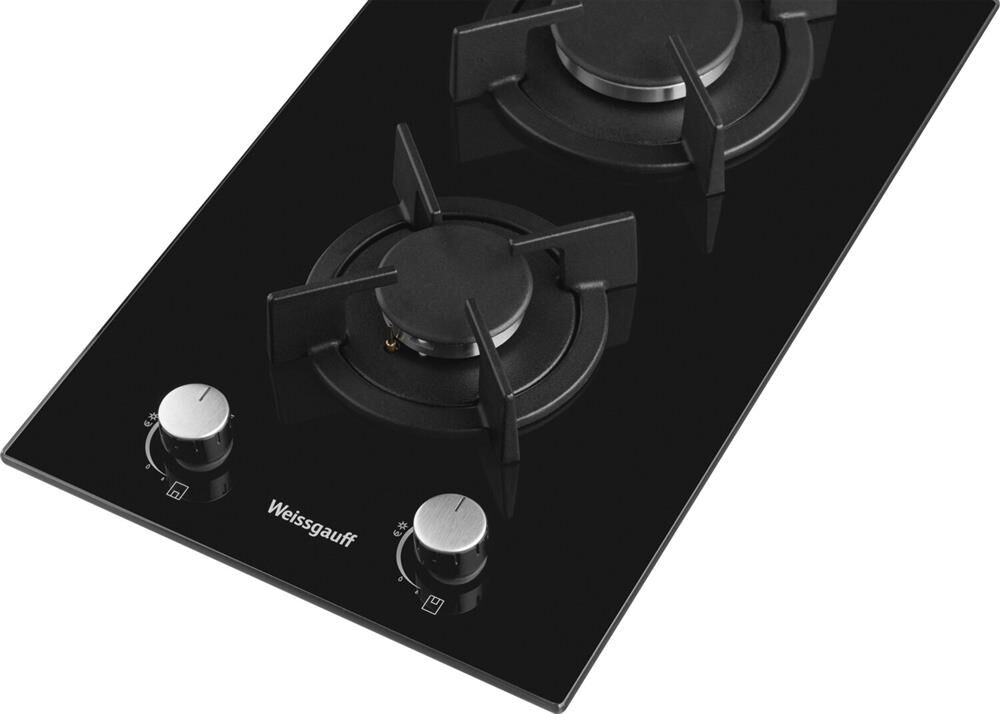 WEISSGAUFF Газовая варочная панель HGG 320 BGR, 2 конфорки, закаленное стекло, черный