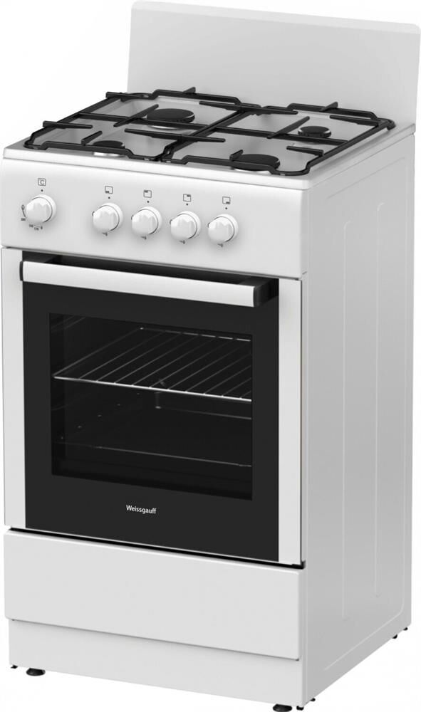 WEISSGAUFF Газовая плита WGS G4G01 W, газовая духовка, без крышки, сталь, белый [430120]