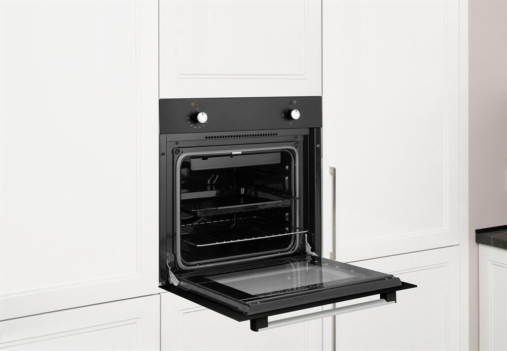 Тип духовки: электрическая. Тип управления: независимое. Переключатели: поворотные. Мощность подключения: 2000. Объем духовки: 50. Максимальная температура: 250. Класс энергоэффективности: A. Очистка духовки: традиционная. Материал внутреннего покрытия духовки: эмаль легкой очистки. Количество стекол в дверце: 2. Освещение духовки: есть. Количество ламп подсветки: 1. Мощность ламп подсветки: 15. Количество программ духовки: 3. Открывание дверцы: вниз. Вес (нетто): 26.8. Габариты упаковки (ед) ДхШхВ: 0.61×0.65×0.68. Вес упаковки (ед): 36. Подключение к электросети: кабель без вилки. Гарантия: 12 мес.. Размеры ниши для встраивания (ШхГхВ): 55.5 x 52.5 x 59.8 см. Размеры (ШхГхВ): 60 х 52.8 х 59.3 см. Цвет: черный. Тип очистки: традиционная. Переключатели: поворотные. Размеры (ШxГxВ): 60 х 52.8 х 59.3 см; ниша 55.5 x 52.5 x 59.8 см. Духовка: электрическая, 50 л, эмаль легкой очистки, 2000 Вт. Класс энергоэффективности: A