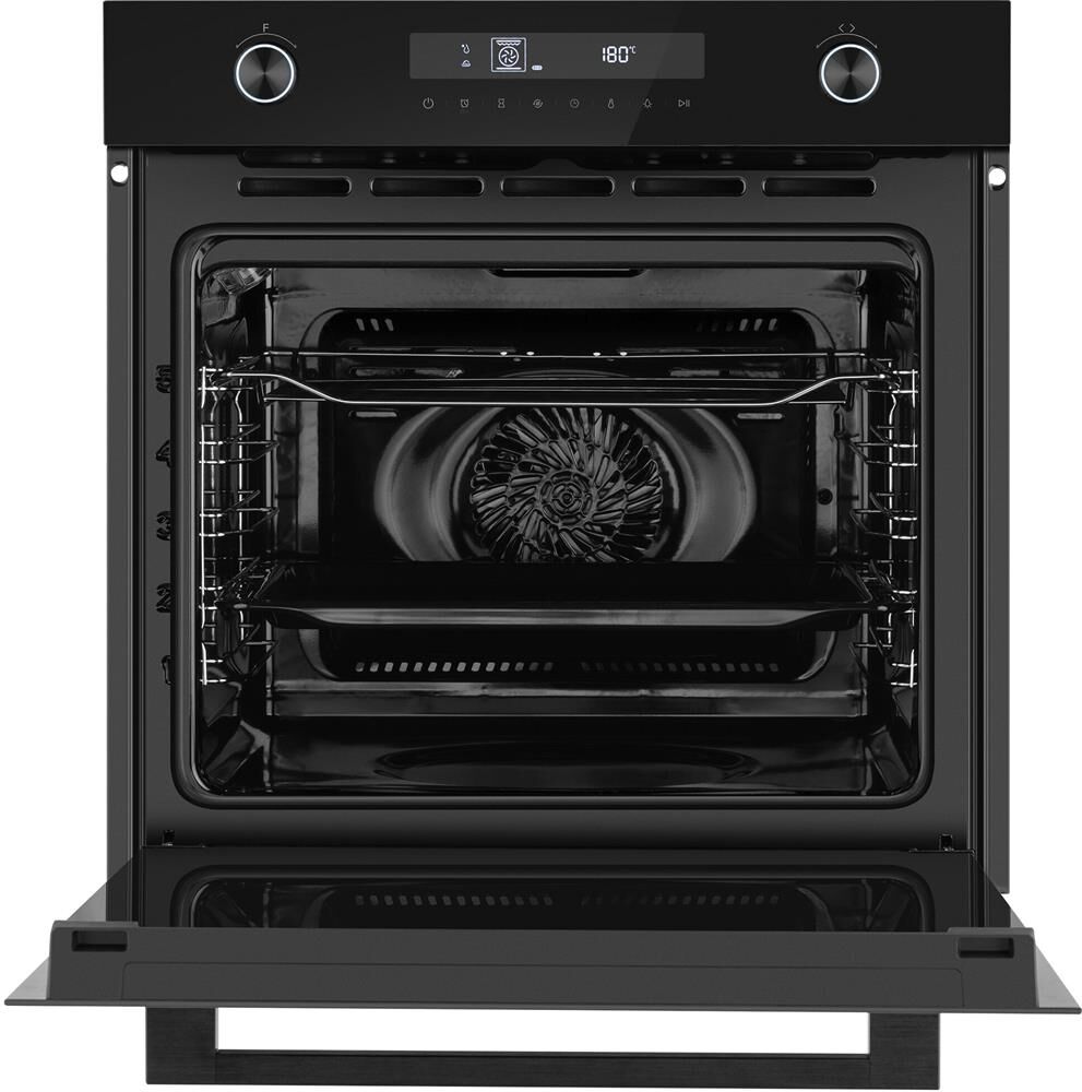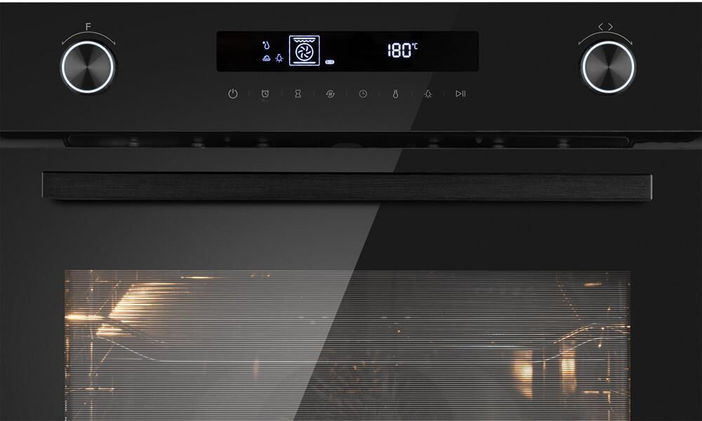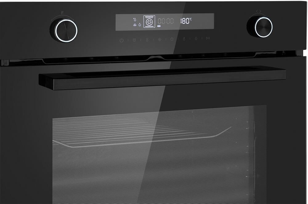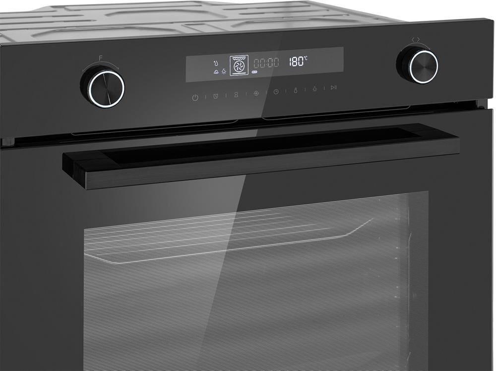 Тип духовки: электрическая. Тип управления: независимое. Переключатели: поворотные/сенсорные. Мощность подключения: 2900. Объем духовки: 72. Максимальная температура: 250. Класс энергоэффективности: A+. Очистка духовки: очистка паром. Материал внутреннего покрытия духовки: эмаль легкой очистки. Вид таймера: электронный. Тип гриля: электрический. Количество стекол в дверце: 3. Освещение духовки: есть. Тип освещения: галогенное. Мощность ламп подсветки: 25. Многофункциональная духовка: да. Количество программ духовки: 13. Открывание дверцы: вниз. Габариты упаковки (ед) ДхШхВ: 0.65×0.72×0.671. Вес упаковки (ед): 37. Страна производства: Китай. Гарантия: 12 мес.. Размеры ниши для встраивания (ШхГхВ): 56 x 55 x 60 см. Размеры (ШхГхВ): 59.5 х 56.6 х 59.6 см. Цвет: черный. Функции: отсрочка старта, таймер, часы. Особенности конструкции: дисплей, полностью стеклянная внутренняя поверхность дверцы духовки. Режимы работы: гриль, конвекция, размораживание. Защита: от детей. Функции: гриль, конвекция, размораживание; защ