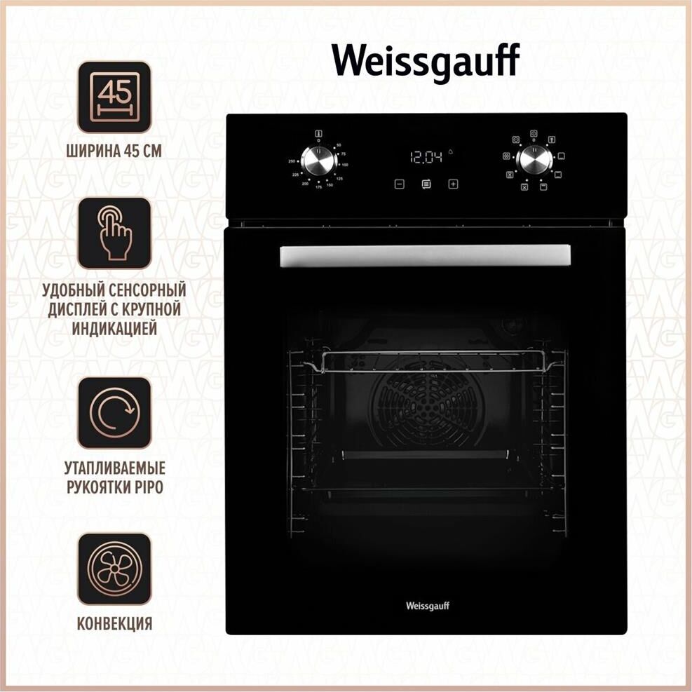 Будьте первым, кто оставил отзыв на “WEISSGAUFF Духовой шкаф Электрический EOY 451 PDX нержавеющая сталь/черный”