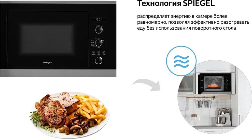 WEISSGAUFF Микроволновая печь HMT-257 25л. 900Вт черный/нержавеющая сталь (встраиваемая)