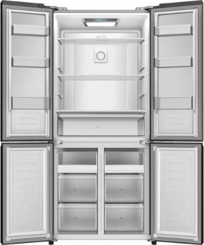 "Холодильник WILLMARK MDC-697IDG незаменимый помощник на кухне с электронным управлением представлен в цвете Skygrey и является мощным холодильным агрегатом с общей вместимостью 517 литров. Технология DUAL INVERTER означает наличие в устройстве двух инверторных элементов: компрессора и вентилятора. Для хранения в нем продуктов предусмотрены 3 камеры с распашными дверями со стеклянными панелями. Модель совмещает в себе стильный дизайн, отличные технические характеристики и высокие эксплуатационные качества. В холодильном отделении пространство разделено четырьмя большими полками и двумя ящиками для хранения овощей, зелени и фруктов. На дверцах холодильного отделения также можно хранить продукты: на каждой из них предусмотрено по две полки. В морозильной камере — четыре прозрачных ящика и две полки. Звуковая индикация открытой двери обеспечивает своевременное и плотное ее закрытие, чтобы внутри холодильника сохранялись оптимальные параметры температуры и влажности. "