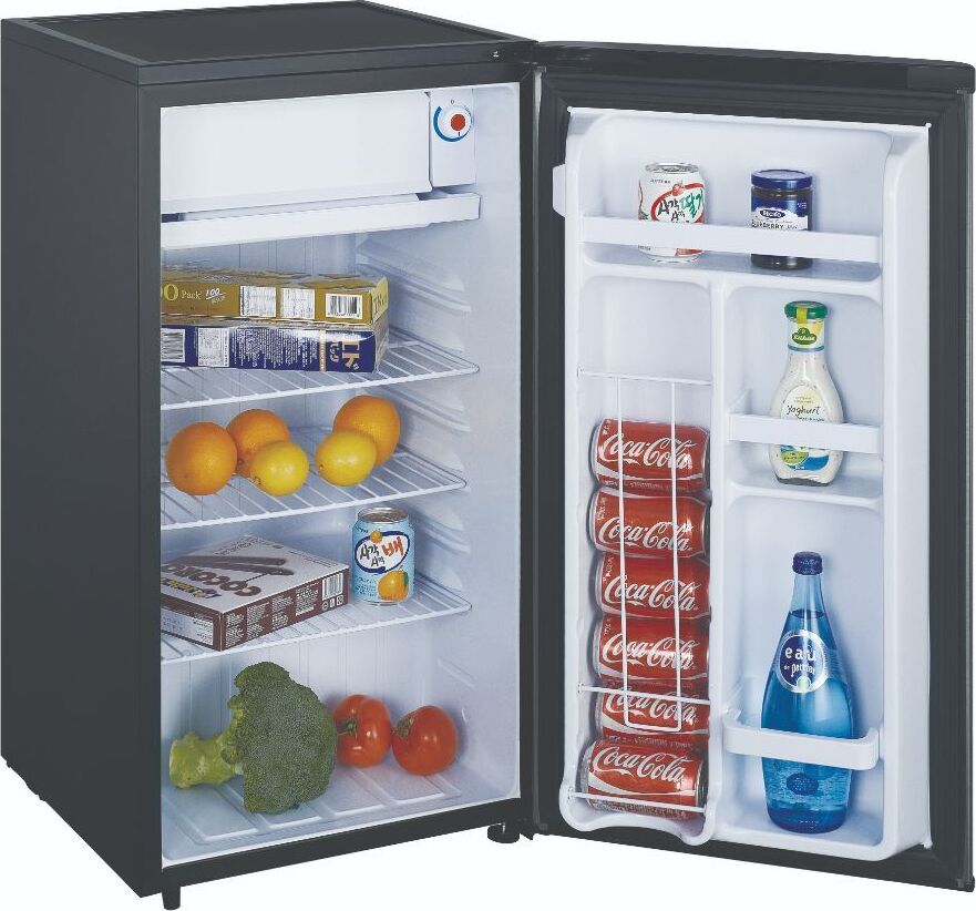 (ШхГхВ)45х48х84см. Цвет серебряный.Класс энергопотребления: А; Климатический тип: N/ST; Количество камер: 1; Количество компрессоров: 1; Объем (л): 100 л; Объем морозильной камеры, л: 8 л; Объем холодильной камеры, л: 82 л; Размораживание морозильной камеры: ручное; Расположение морозильной камеры: Верхнее; Система размораживания: Defrost; Тип управления: механическое; Уровень шума, дБ: 42; Хладагент: R600a, 20г.