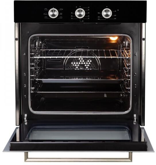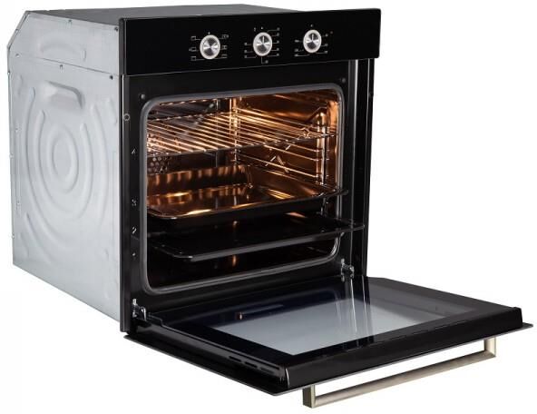 Духовой шкаф (электрический). Цвет: Черный, Цвет фурнитуры: серебристый + нержавеющая сталь, Материал фасада: закаленное стекло, Класс энергопотребления: A+, Управление: утапливаемые переключатели, Объем: 72 литра, Количество функций 6: гриль, верхний нагрев, нижний нагрев, верхний и нижний нагрев, верхний и нижний нагрев с конвекцией, конвекция (разморозка), Мощность: 2100 Вт, МАХ температура нагрева: 260°С, Стекла дверцы: двойное съемное стекло, Панорамное внутреннее стекло Smart Eye, Холодный фронт, Очистка духовки: эмаль Easy Clean, Тангенциальное охлаждение, Хромированные боковые направляющие, Уровней установки противня: 5, Решетка, Противень: стандартный + глубокий, Габариты (ШхГхВ): 595*543*595 мм, Ниша для встраивания (ШхГхВ): 560*550*600 мм, Длина шнура 1300 мм, Вес брутто 33,25 кг, Срок службы до 10 лет