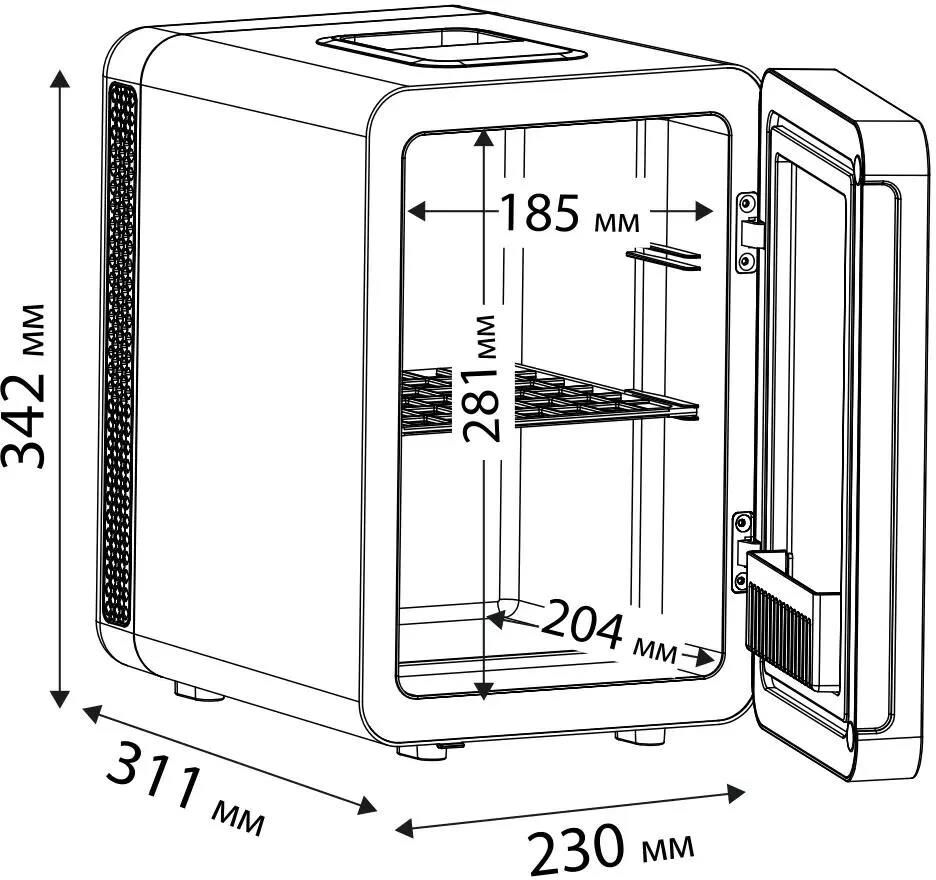 Количество камер: однокамерный. Тип управления: электронное. Система размораживания: ручное. Общий объем холодильника: 10. Общий объем холодильной камеры: 10. Уровень шума: 37. Количество полок: 2. Материал полок: пластик. Тип: Холодильник. Вес (нетто): 3. Количество дверей: 1. Габариты упаковки (ед) ДхШхВ: 0.335×0.275×0.374. Вес упаковки (ед): 3.75. Страна производства: Китай. Количество полок на дверце: 1. Наличие морозильной камеры: морозильная камера отсутствует. Тип вилки: ЕВРО. Частота электросети: 50 — 60 Гц. Направление открывания двери: вправо. Гарантия: 12 мес.. Цвет: белый. Размеры (ШхВхГ): 31.1 х 34.2 х 23 см. Климатический класс: SN. Цвет: белый. Морозильная камера: отсутствует. Количество камер: однокамерный. Размеры (ШхВхГ): 31.1 х 34.2 х 23 см. Объем: общий 10 л; холодильной камеры 10 л